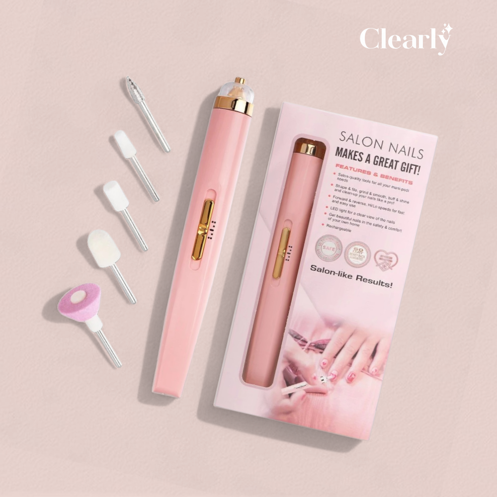Twoje dłonie mówią przed Tobą – upewnij się, że mówią to, co trzeba. Elektryczny pilnik Nail PRO 5 w 1 zapewni Ci piękno jak z salonu w domowym zaciszu. Dzięki 5 obrotowym, wielorazowym głowicom przeznaczonym do modelowania, wygładzania, polerowania i udoskonalania, poczujesz się zadbana, elegancka i pewna siebie każdego dnia.