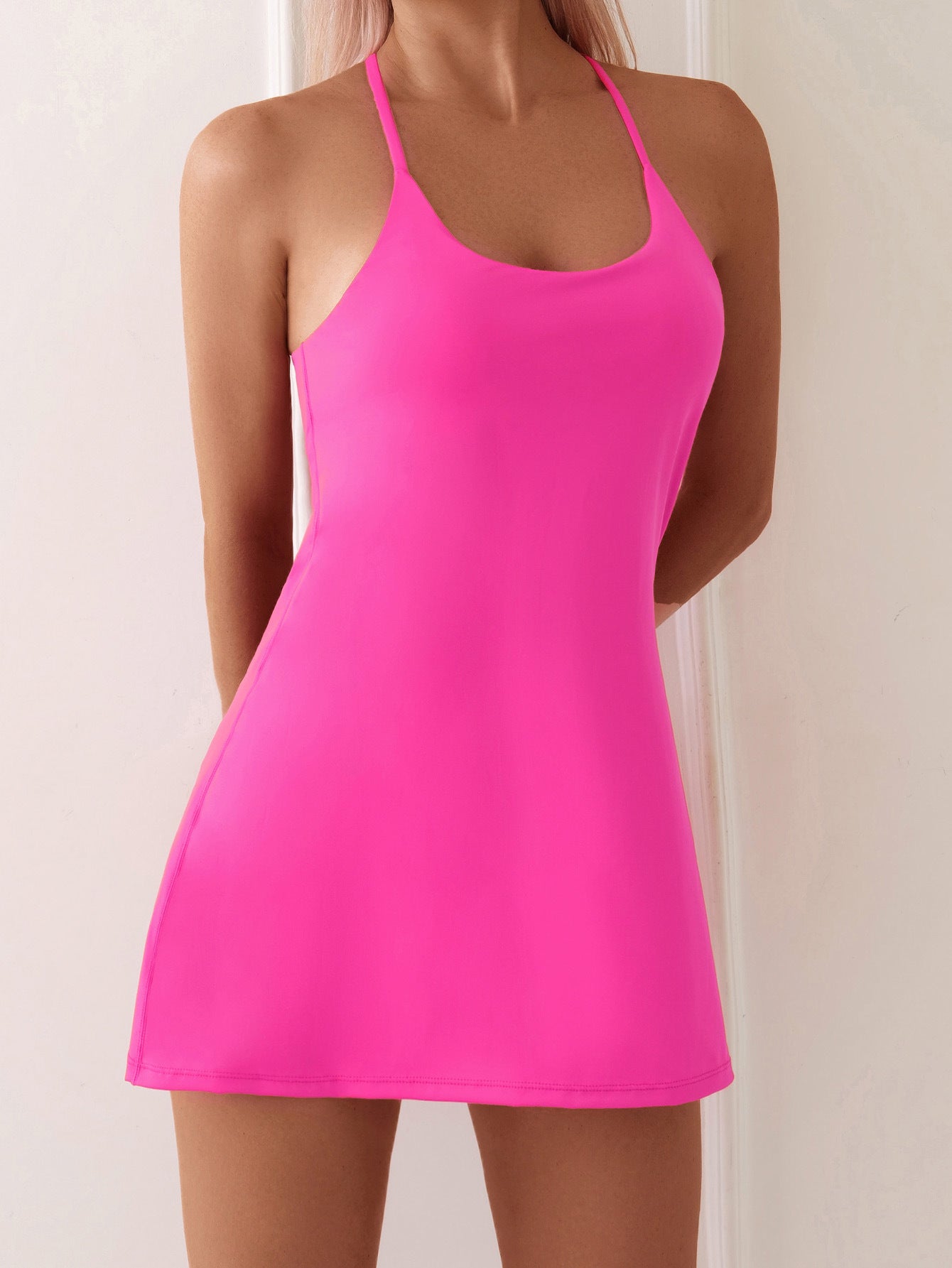 Wykonany z miękkiego, oddychającego materiału, który pięknie się dopasowuje. Sukienka Dafne Bisio ma wszytą talię i wszyte spodenki, dzięki czemu możesz siedzieć, kucać i poruszać się bez obaw o przesuwanie się sukienki. Pożegnaj niewygodne regulacje i ciesz się czystą wygodą – i mnóstwem komplementów.