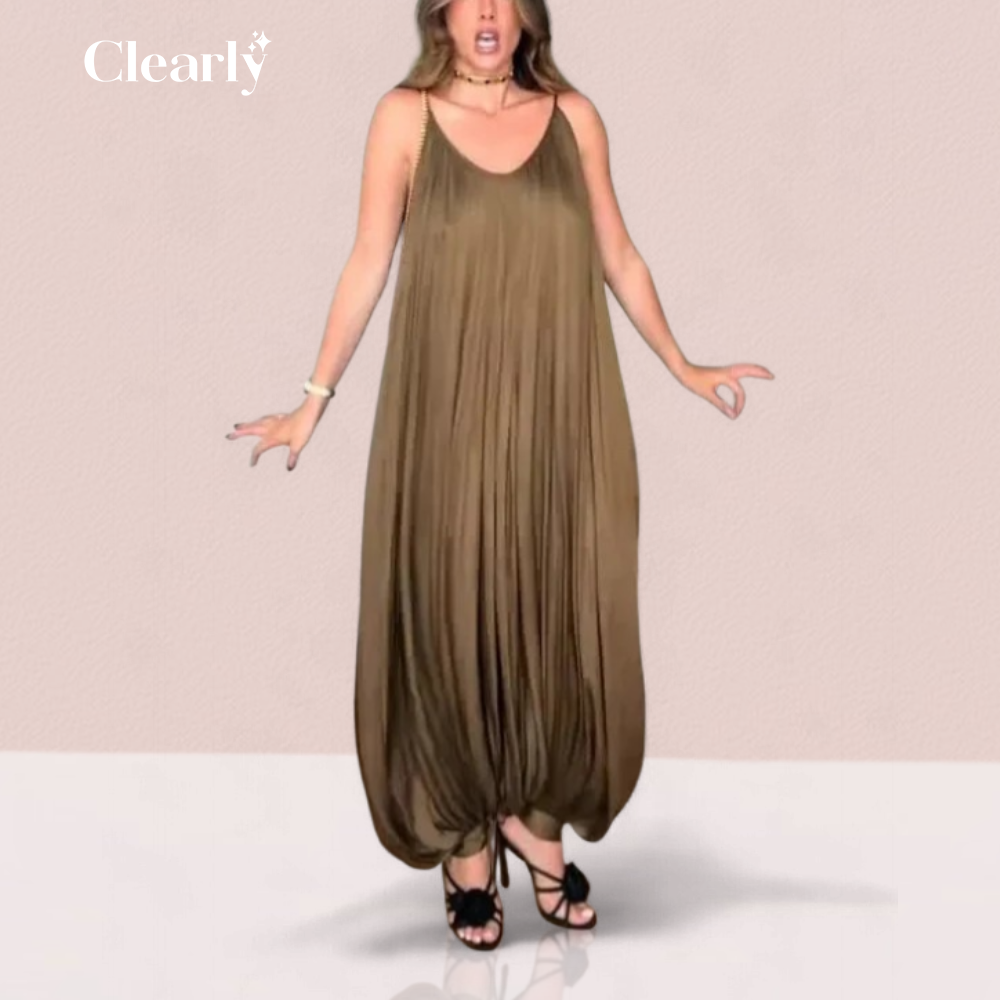 Niezależnie od tego, czy wybierasz się na brunch, letnią randkę, czy weekendowy wypad za miasto, ten kombinezon robi natychmiastowy efekt 'wow'. Szerokie nogawki są lekkie i optycznie wydłużają sylwetkę, a plisowanie dodaje luksusowego wyglądu – bez konieczności spędzania godzin przed lustrem.