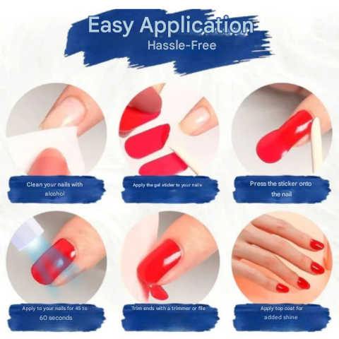✔ Szybka i łatwa aplikacja: Koniec z drżącymi dłońmi i rozmazanym lakierem. Wystarczy przykleić, docisnąć, utwardzić i odcisnąć. To całkowicie proste – nawet jeśli nigdy wcześniej nie malowałaś paznokci.