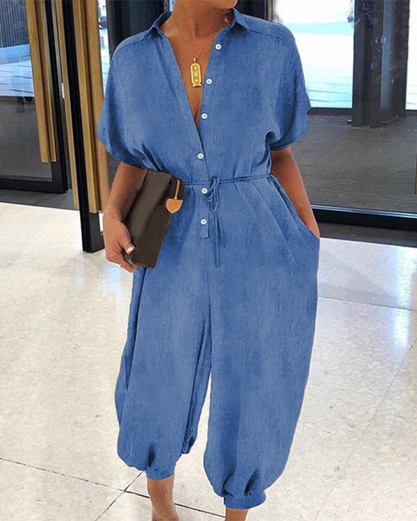 Niezależnie od tego, czy wybierzesz kolor khaki, czerń, dżins czy zabawny wzór, ten kombinezon sprawi, że Twój look będzie szykowny, a jednocześnie zachowa luźny, swobodny styl. Połącz go z sandałami lub trampkami, dodaj warstwowy T-shirt, jeśli chcesz, i jesteś gotowa na wszystko — bez obaw, po prostu perfekcja.
