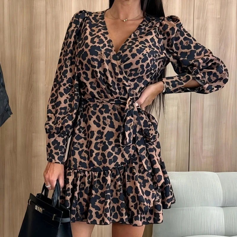 Wyróżnij się z tłumu dzięki sukience z nadrukiem w panterkę, która przyciągnie wzrok i doda Ci pewności siebie. Ten model to nie tylko moda – to sposób na podkreślenie kobiecości i pokazanie, że wiesz, czego chcesz. Nadaje się zarówno na popołudniową kawę, jak i wieczornego drinka, łącząc zwierzęcą elegancję z komfortem przez cały dzień. Dekolt w serek i pasek podkreślają talię i podkreślają naturalne piękno Twojej sylwetki. Czujesz się seksownie, stylowo i komfortowo – a to siła, której nie da się przeoczyć.